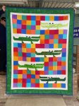 Al the Gator Quilt Kit, with two sizes. Pillow Size is 16" x 38" Twin Size is 74" x 94"